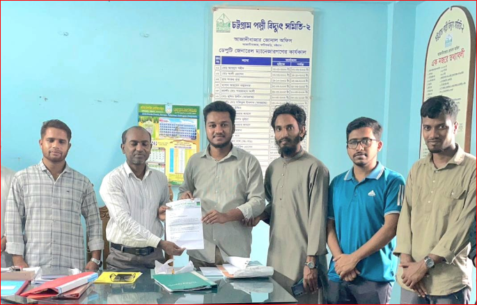 স্মারকলিপি গ্রহণকালে পল্লী বিদ্যুৎ সমিতি, চট্টগ্রাম-২ জোনাল অফিসের ডিজিএম পরীক্ষা চলাকালীন নিরবিচ্ছিন্ন বিদ্যুৎ সরবরাহ নিশ্চিত করবে বলে আশ্বস্ত করেন।